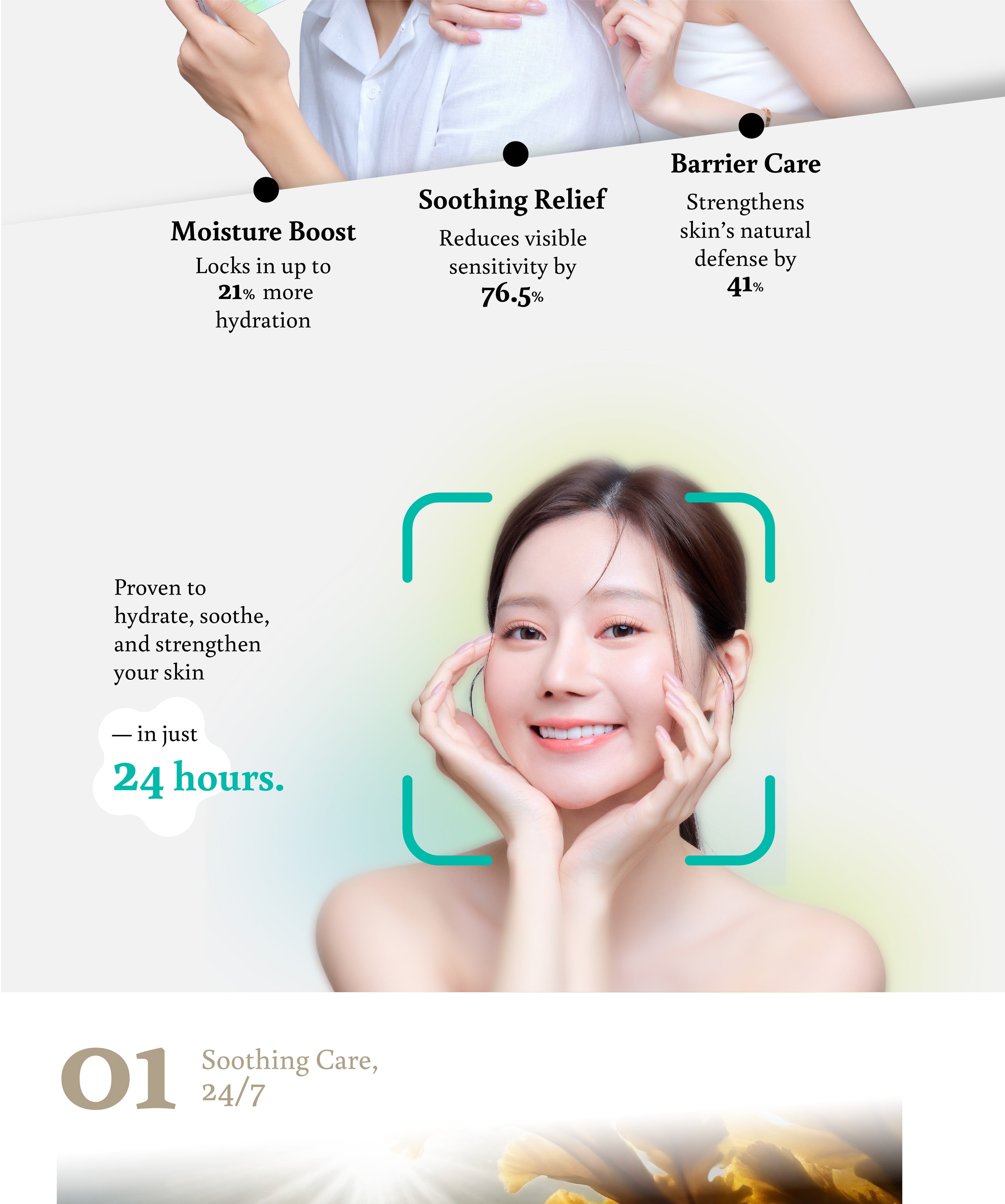 Gentle soothing ( Centella Asiatica Extract, Laminaria Ochroleuca Extract, Yeast Extract)